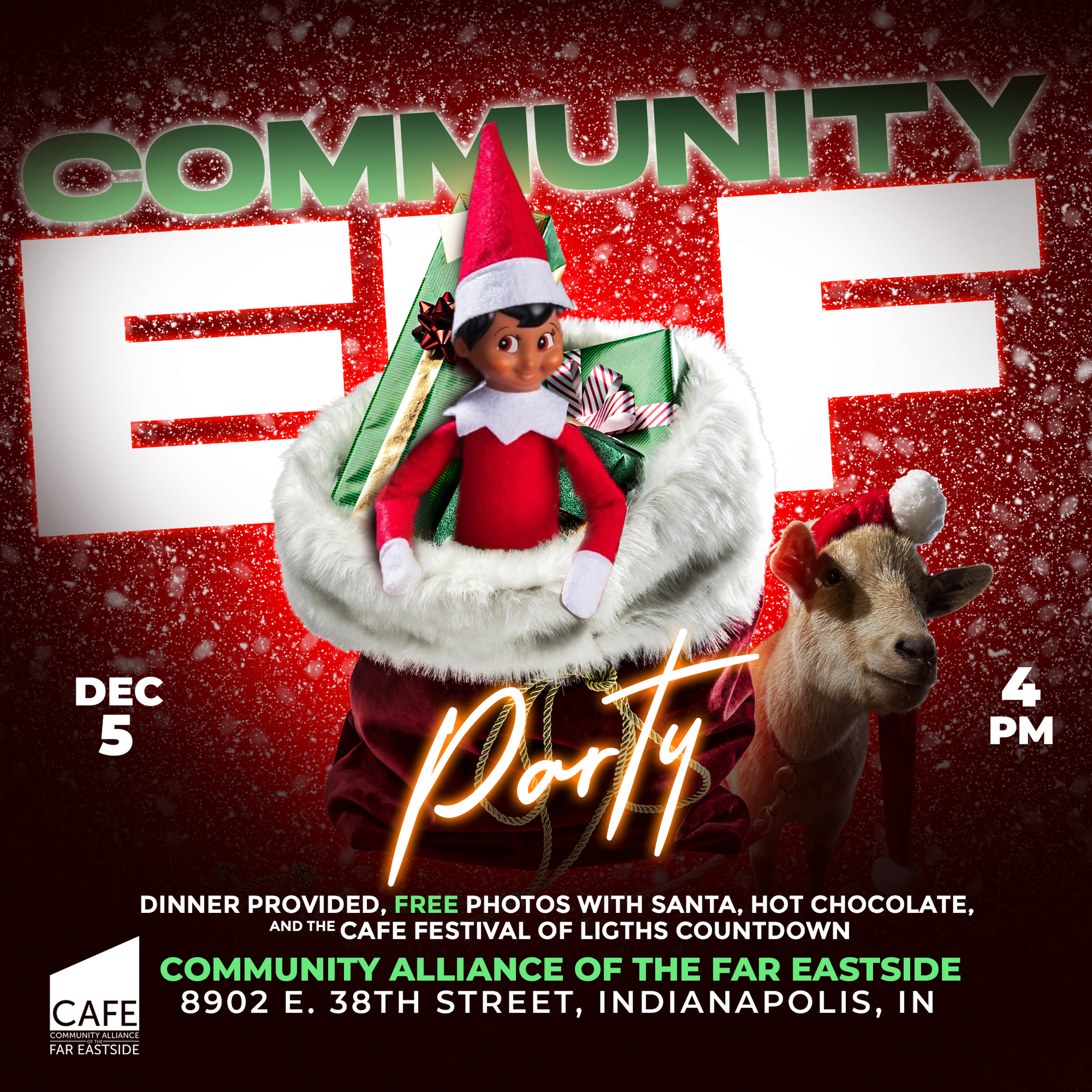 Celebrate the spirit of Christmas with your neighbors and friends at our beloved Community Elf Party! Join us on December 5, from 5-8 PM at CAFE for an evening filled with festive fun and holiday magic.✨